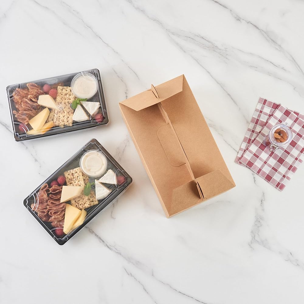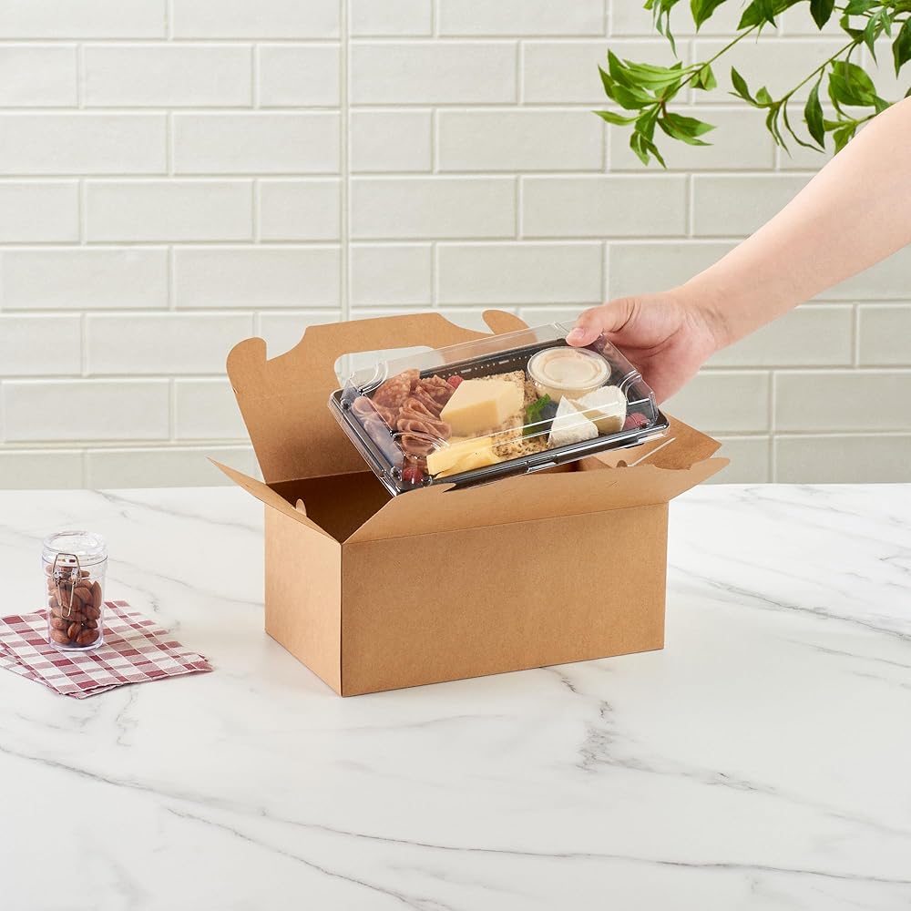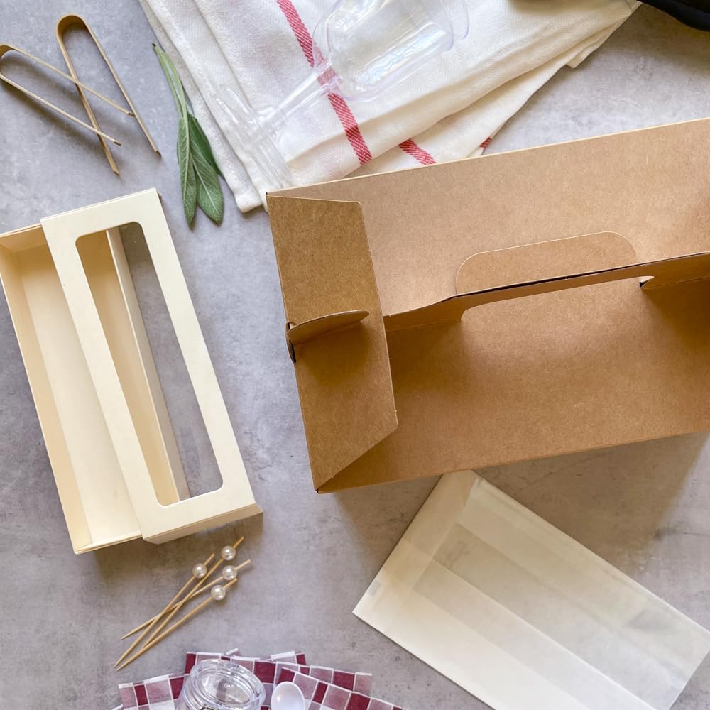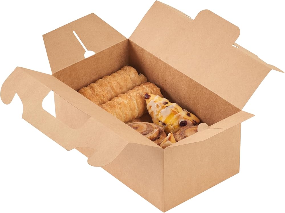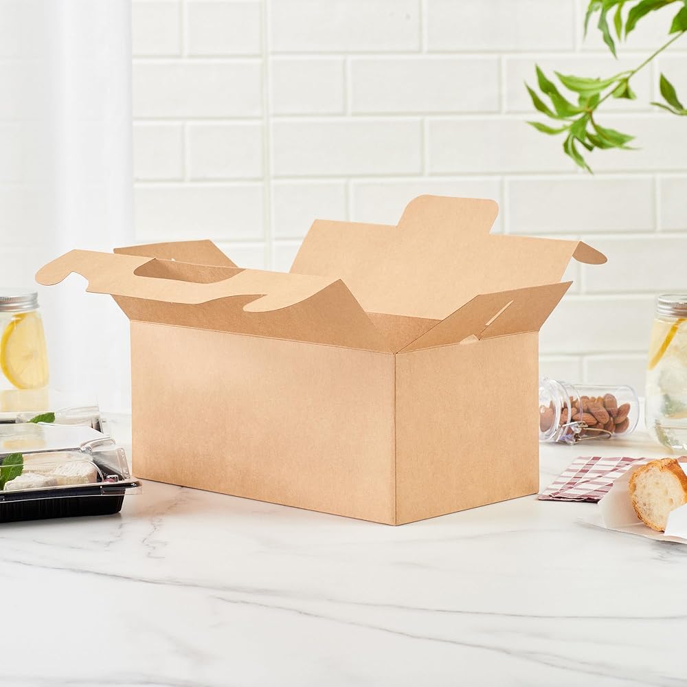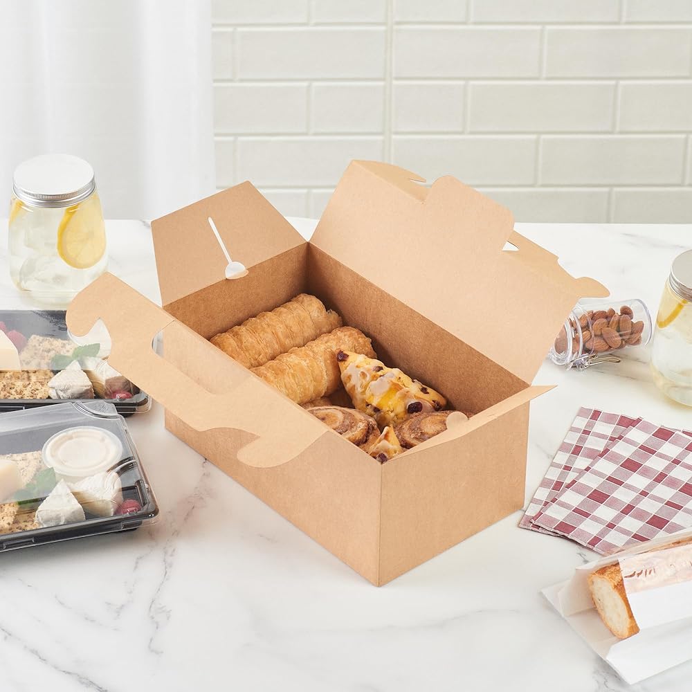 Restaurantware Bio Tek 10.2 x 5.9 x 6.9 Inch Treat Boxes With Handles 100 Rectangle Gable Boxes - With Secure Tab Grease-Resistant Kraft Paper Cardboard Lunch Boxes Recyclable