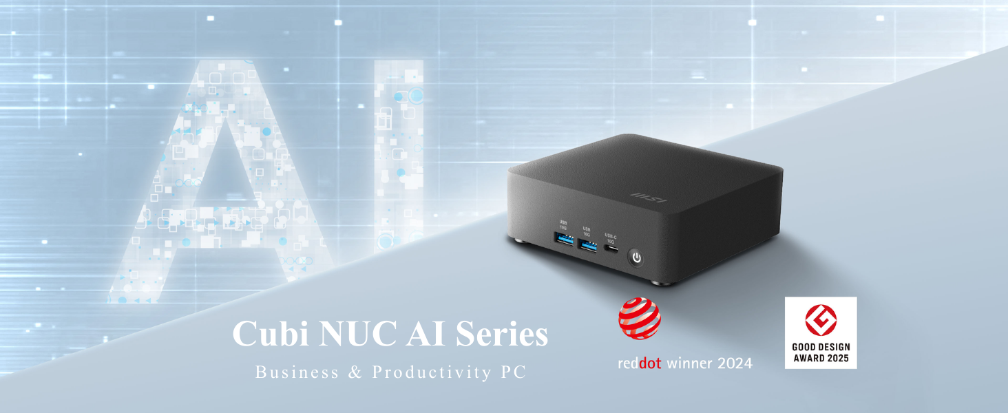 msi Cubi NUC AI Business Mini Desktop, Intel 14-Core Ultra 5 125H, 16GB DDR5, 1TB SSD, Support 4-Display & 4K, 2 x Thunderbolt 4, 2 x HDMI, Dual 2.5G LAN, Wi-Fi 6E, Windows 11 Pro, Black
