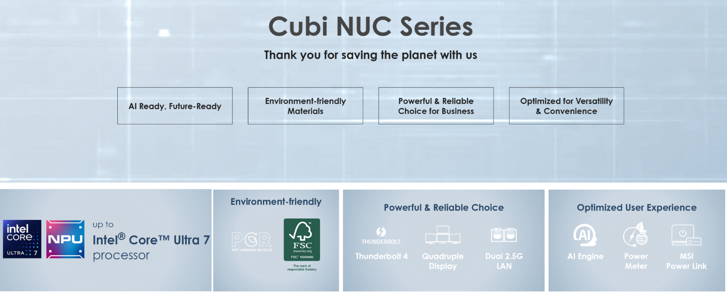[Maximize Space with the Versatile Cubi NUC] The Cubi NUC is perfect for spaces with limited room, featuring a 0.51-liter chassis. It can be mounted behind a monitor, on a wall, or in digital signage, freeing up desk space and creating a tidier workspace.