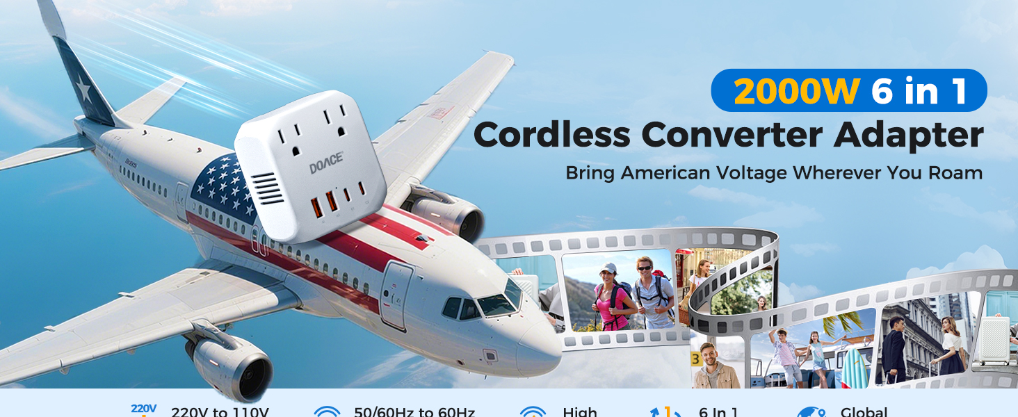 Charge Up to 6 Devices at Once: DOACE Power Converter features 6 charging ports, including 2 sockets and 4 USB ports. It can charge 6 devices simultaneously. USB includes 2 PD 20W fast charging USB-C ports and 2 QC 18W fast charging USB-A ports.