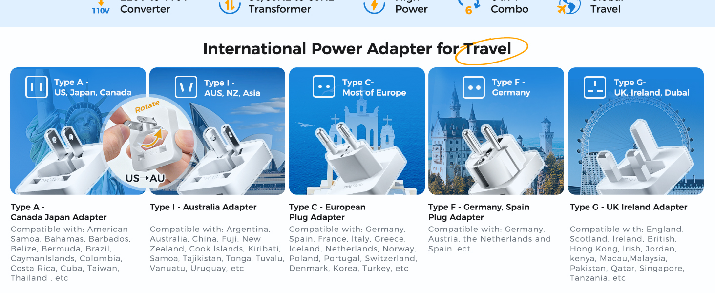 Smart 20W USB-C Fast Charging: The upgraded travel converter comes with Type-C ports equipped with an AI chip that intelligently matches your device's charging protocol. Supports up to 20W fast charging, delivering safe, efficient, and worry-free power on the go.