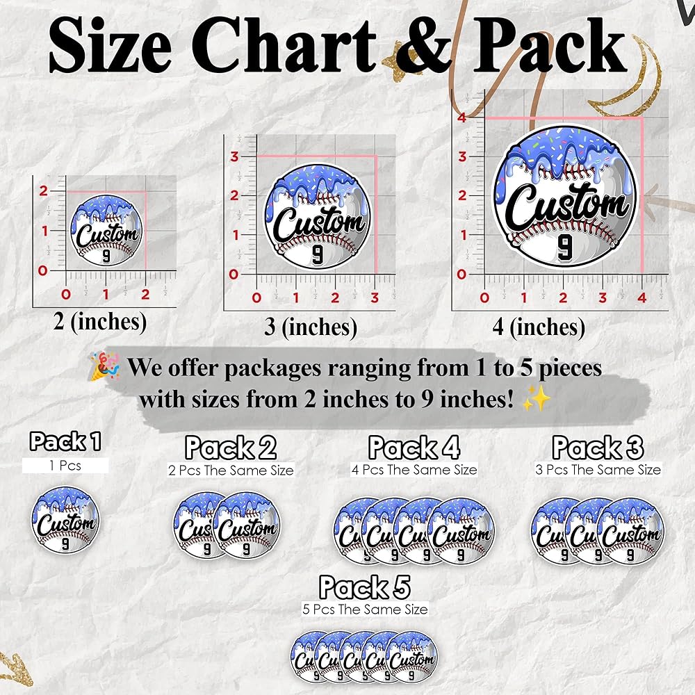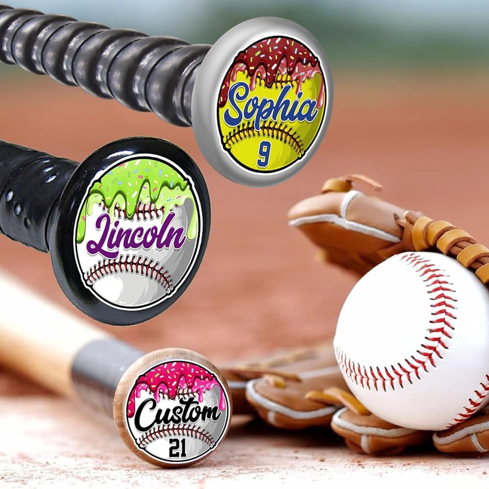 Custom Baseball Softball Bat Knob Sticker Personalized Name Number Decal, Waterproof Vinyl, Durable Sports Equipment Label for Helmet, Laptop, Water Bottle, Baseball Softball Players Team, 1.5-12 Inch