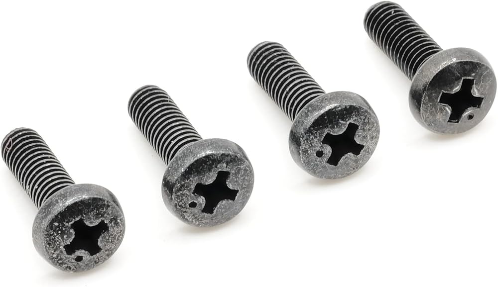 A complete set of TV stand replacement screws for your Westinghouse WG55UX4100. One set of metric screws, four screws in total. Four black machine screws.