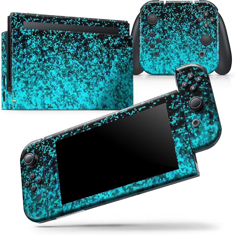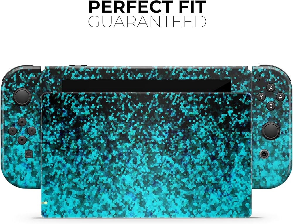 Design Skinz - متوافق مع وحدة تحكم Nintendo Switch OLED + Joy-Con - ملصق حماية من الجلد مقاوم للخدش وقابل للإزالة من الفينيل - طباعة لامعة غير مركزة باللون الأسود والفيروزي
