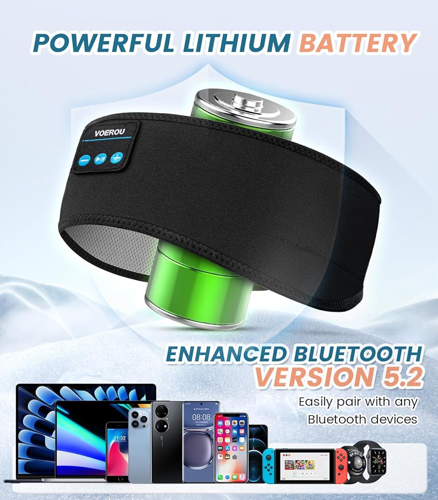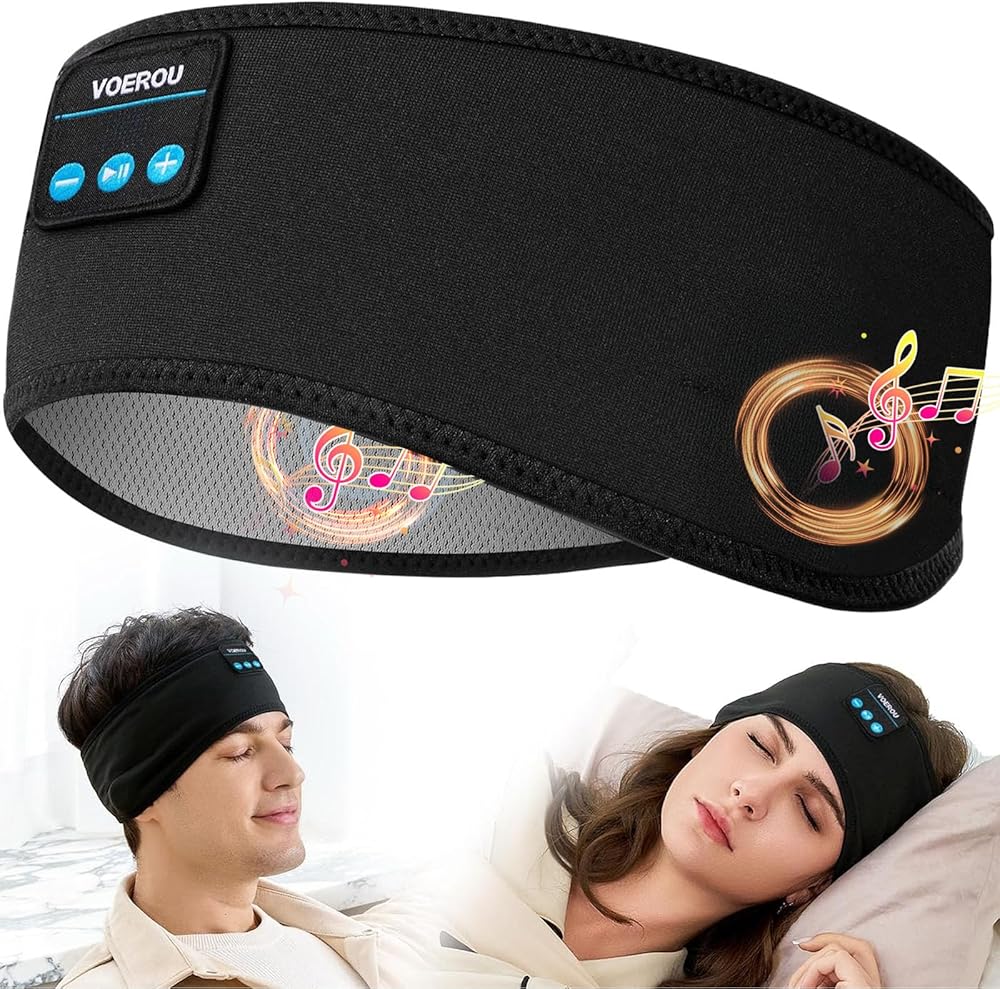 Voerou Sleeping Headphones Bluetooth 5.4 Headband, Wireless Music Eye Mask with HD Stereo Speakers, Headband Headphones for Side Sleepers, Christmas Cool Tech Gadgets Gifts for Men Women Teen Boys
