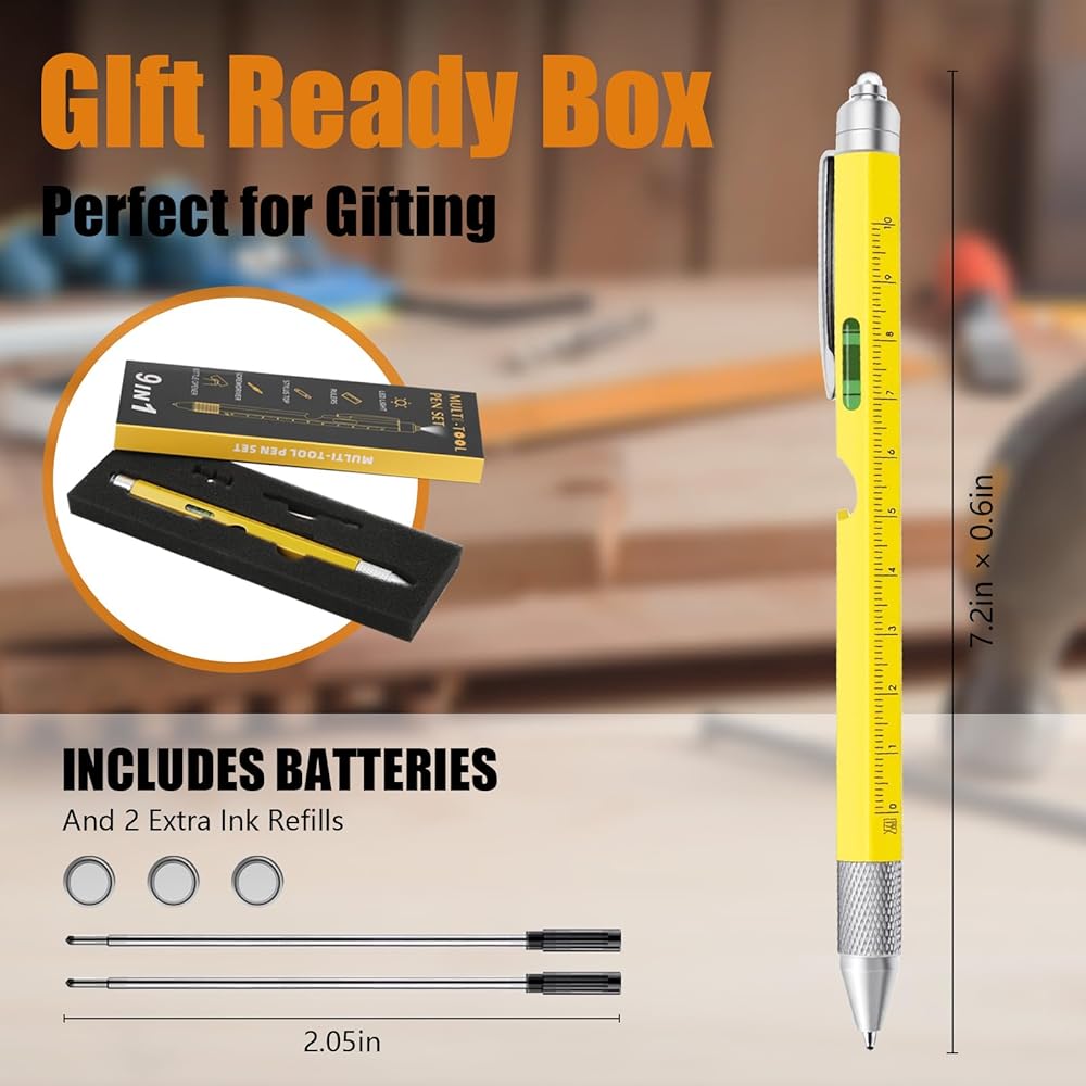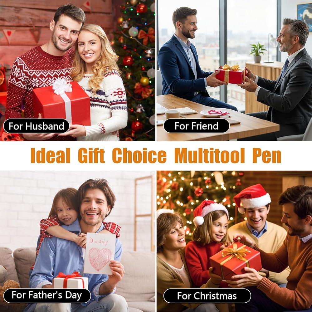 Ideal Gifts for Men: Our 9-in-1 multi tool pen is a cool gadget and makes perfect gifts for men, dad, husband, friend or grandpa. Packaged in a stylish box, it's a unique choice for Christmas gifts, Father's Day, birthdays, or stocking stuffers for men, combining practicality with thoughtful design.