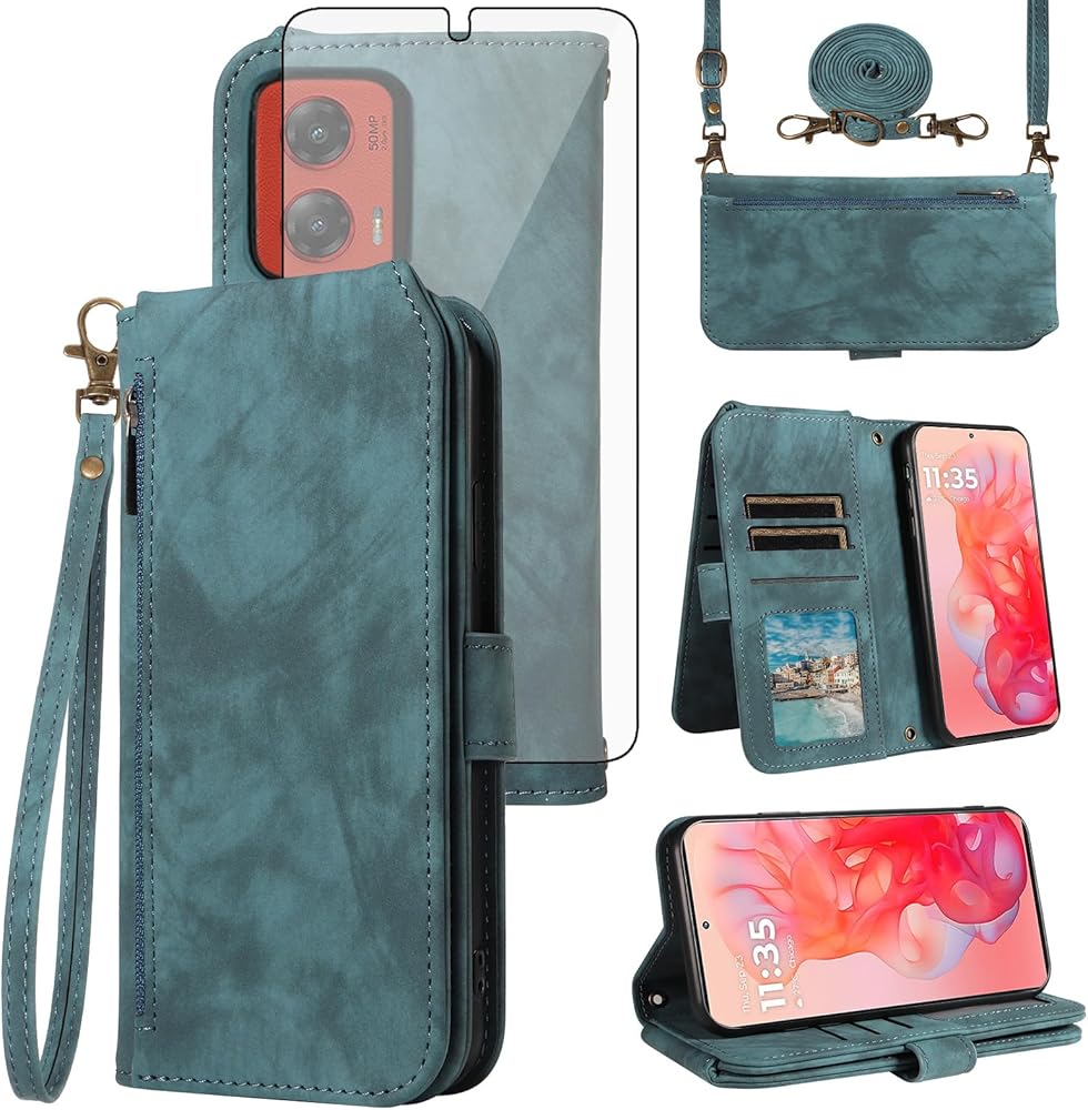 【Package includes】: We will send the phone case with 1 piece tempered glass screen protector + 1 detachable crossbody lanyard + 1 detachable wrist strap.