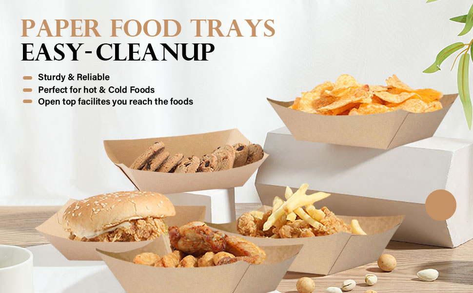 MICROWAVE SAFE & SPACE SAVER - If you're looking to warm up your meal or leftovers, you can rely on our paper food trays as they are microwave safe. Also, they can be stacked one on top of another, which will save you some extra space