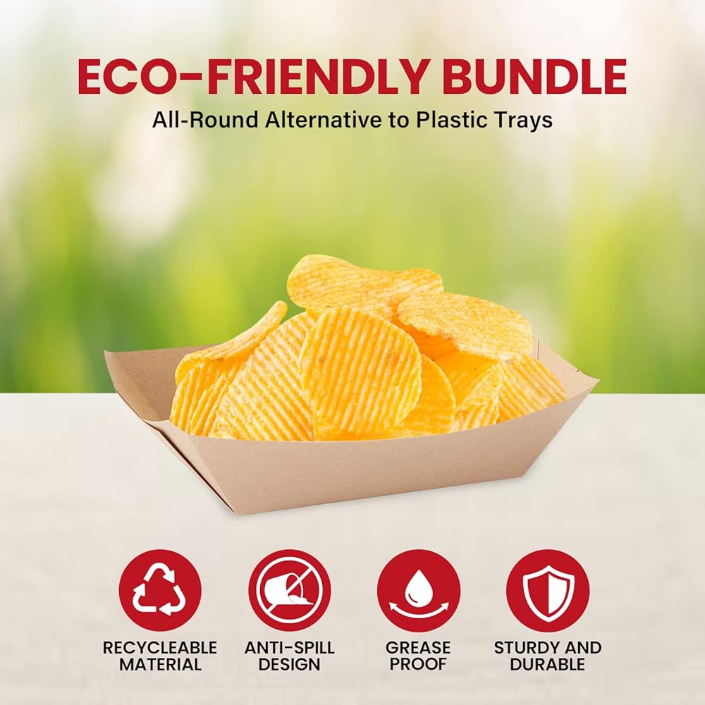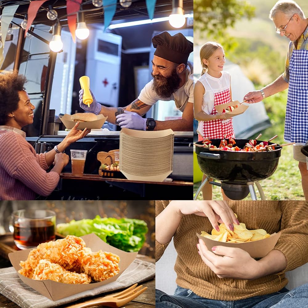 100 pcs Paper Food Trays Disposable, 1 LB Brown Food Boats Disposable for Serving Concession Food, Paper Tray, Nacho Trays Disposable, Paper Boats for Food in Festivals, Carnivals and Fairs