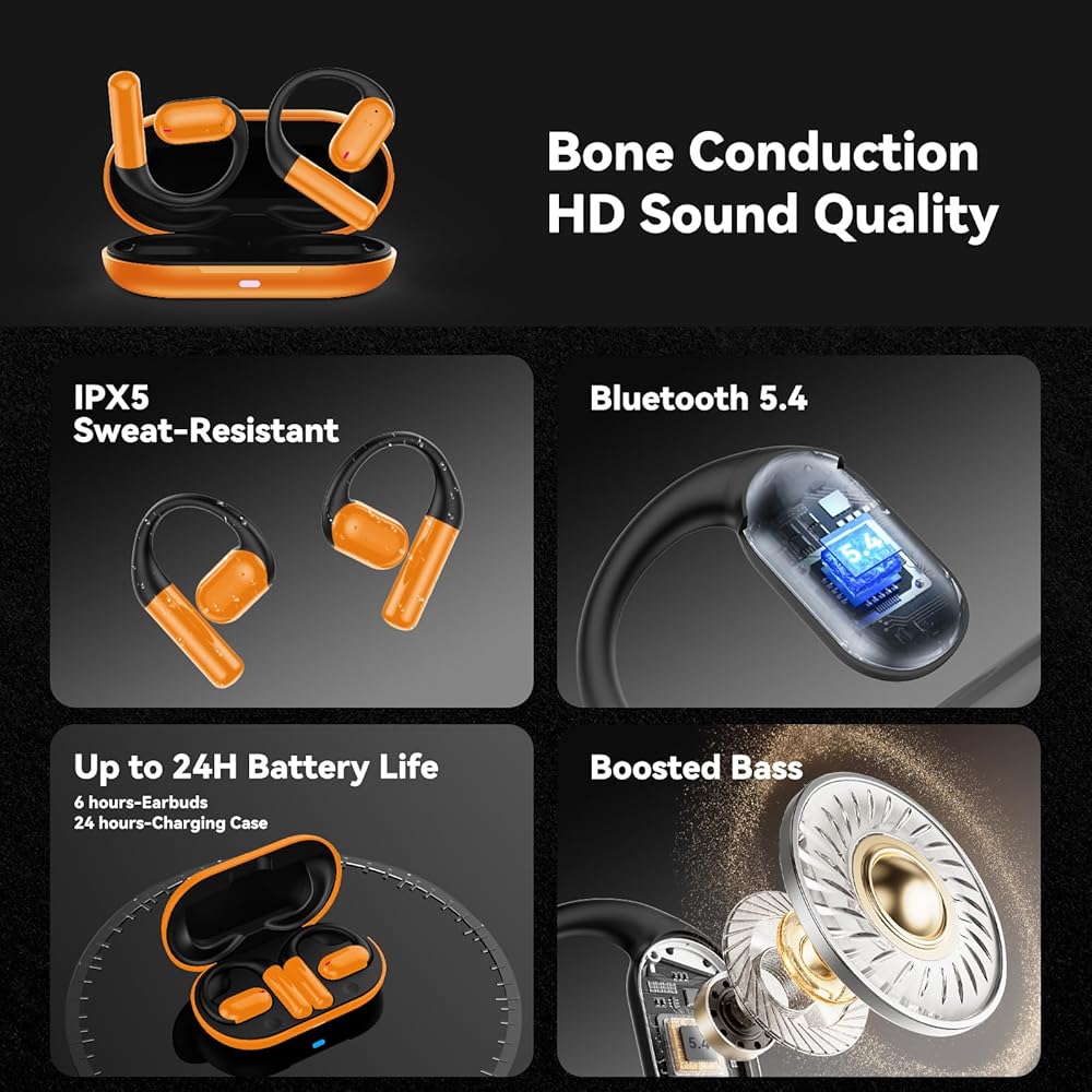 【Bluetooth 5.4】This open ear earbud is equipped with advanced Bluetooth 5.4 technology, ensuring that you can easily connect to your mobile phone, tablet or other devices. This Bluetooth bone conduction earbud offers faster and more stable performance, with stable transmission within 10 meters. You don't need to worry about signal loss or delay issues. The smooth connection allows you to enjoy music and calls seamlessly