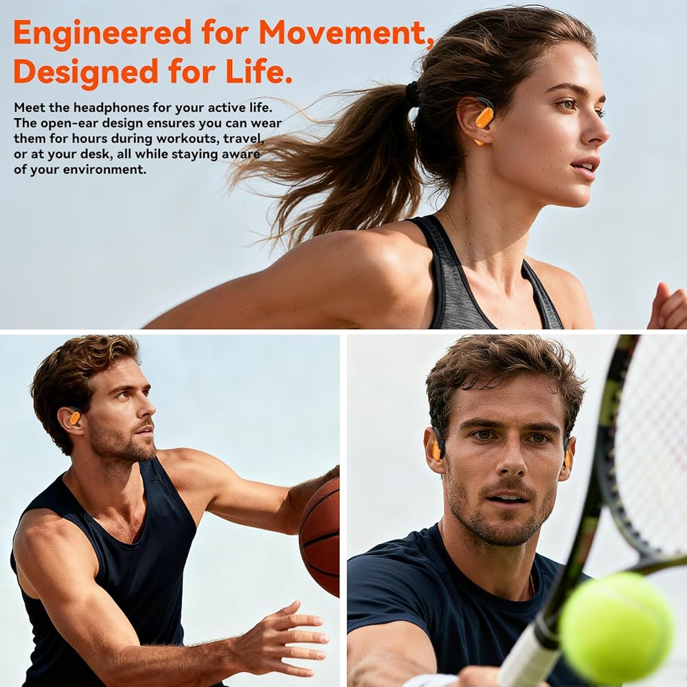 【OWS True Bone Conduction 】Unlike traditional air conduction that blocks your ear canal, our OWS true bone conduction technology transmits sound through temporal bone vibrations, keeping your ears completely open. This not only eliminates ear canal pain but also allows you to stay aware of your surroundings during workouts or commutes, ensuring auditory safety. The exclusive directional sound transmission structure effectively contains sound leakage, keeping your listening private and secure.