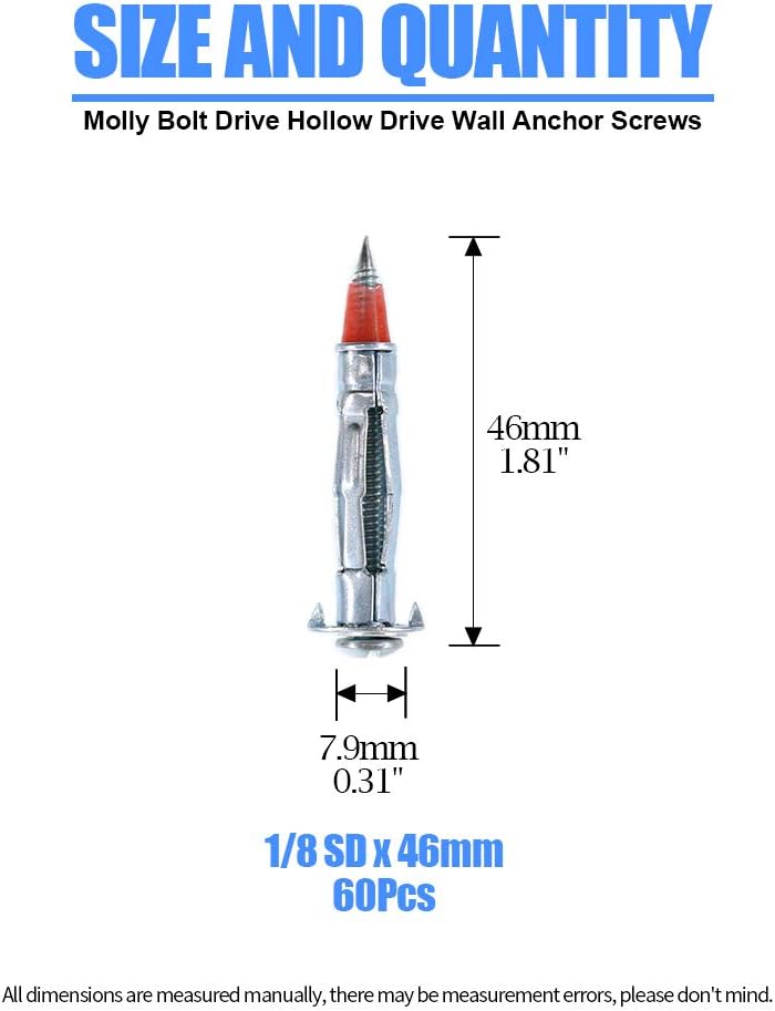 Glarks heavy duty high quality molly bolt drive hollow drive wall anchor screws set