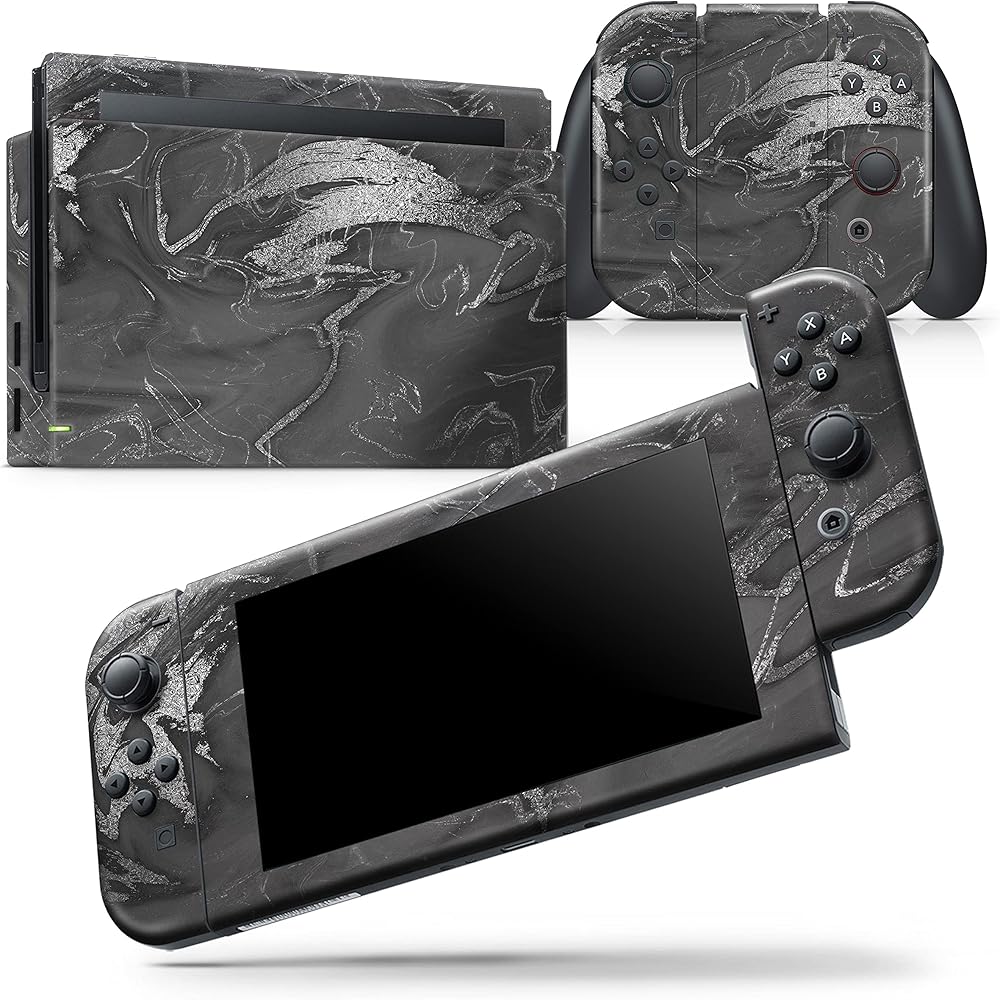 Design Skinz - Compatible with Nintendo Switch Console + Joy-Con - Skin Decal Protective Scratch-Resistant Removable Vinyl Wrap Cover - Black & Silver Marble Swirl V7