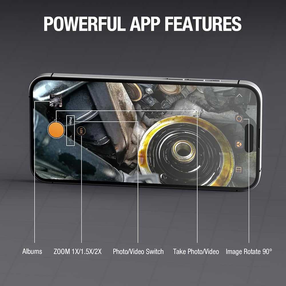 【Easy to Use】Plug-and-Play - No WiFi or complex setups required. Just download the app, connect the endoscope camera to your iPhone, and start using it.