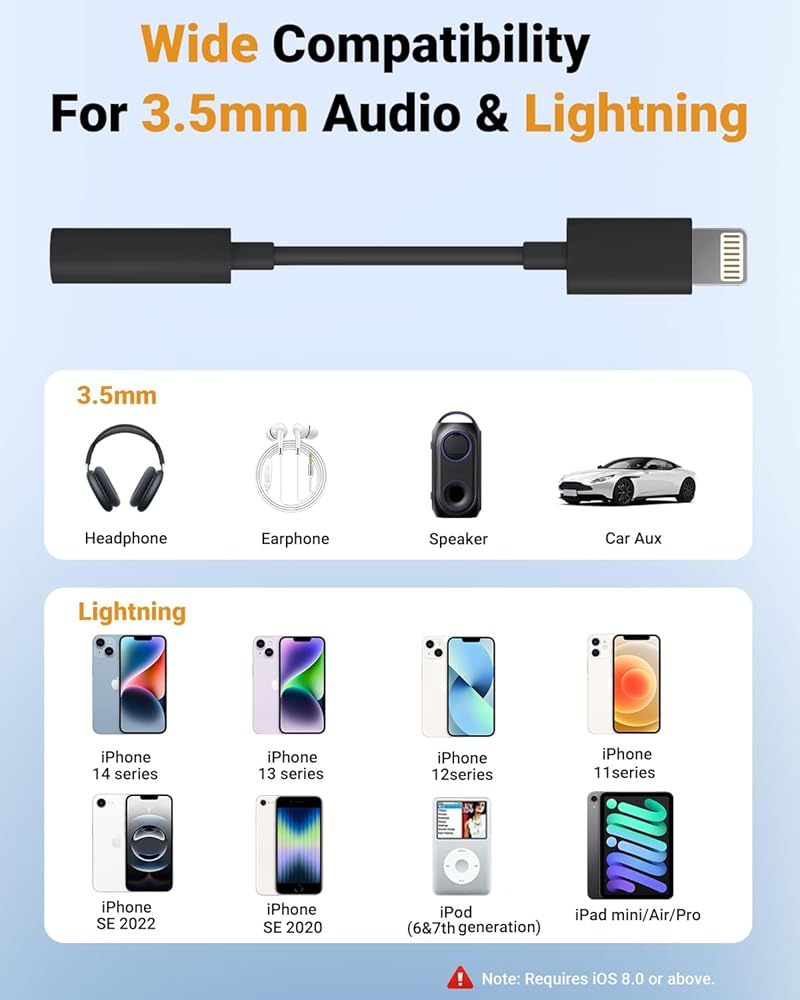 【Perfect Compatibility, Smooth Audio Experience】Microwoo's headphone jack adapter is optimized for Apple devices, compatible with iPhone 7 and later (including the 8, 11, 12, 13 & 14 Series), iPad, and iPod (iOS 11+). Connects seamlessly to all 3.5mm headphones, car aux cables, and home speakers for pure, high-quality audio