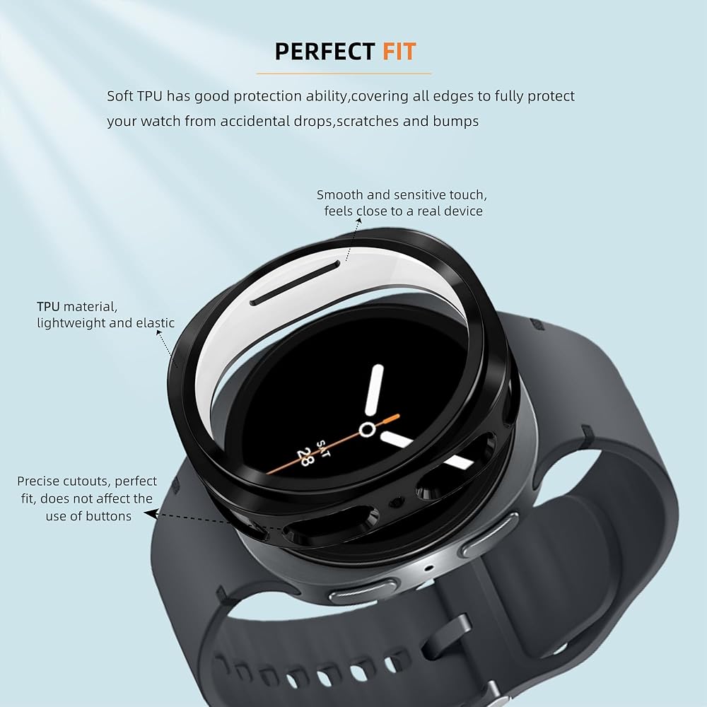 Full Protection:This case covers all parts of Samsung Watch 8,provides comprehensive protection.It's made of superior TPU,avoid the scratch,falls and impacts.Lightweight design with lighter weight