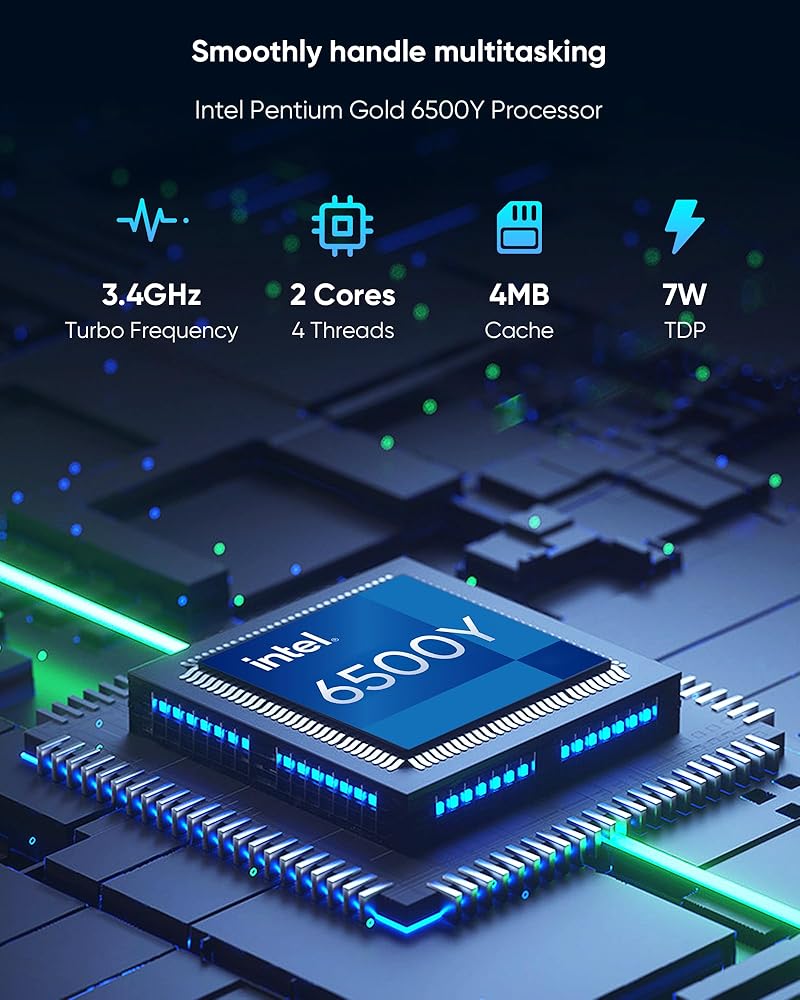 [ Pentium 6500Y Processor: Efficient Performance for Daily Tasks ] Powered by the Pentium 6500Y processor, this laptop delivers reliable, low-power performance ideal for daily use. It handles essential tasks like web browsing, document editing (Word/Excel), video calls, and video streaming with ease—balancing speed and energy efficiency to avoid unnecessary battery drain, perfect for both office work and casual entertainment.