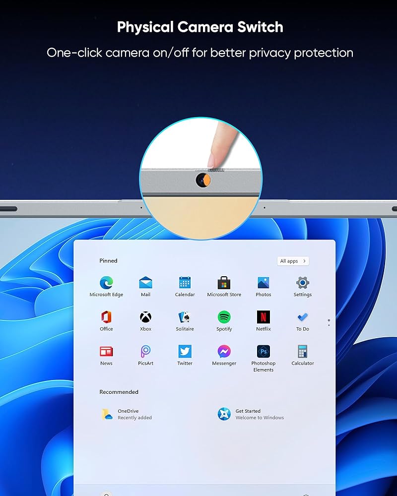 [ Built-In Privacy Shutter: Protect Your Digital Security ] We prioritize your privacy! The webcam comes with a physical privacy shutter that you can slide closed when not in use, preventing unauthorized access. This gives you peace of mind during video calls, online classes, or even when the laptop is idle—no more worrying about accidental camera activation.