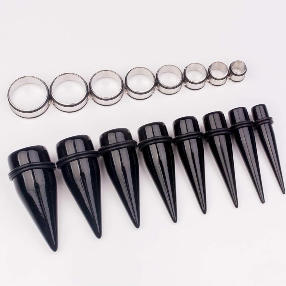 [Value Pack]: 32 Pieces (16 Pairs): 16 Pieces (8 Pairs) of Large Surgical Steel Tunnels and 16 Pieces (8 Pairs) of Large Acrylic Tapers with Rubber Double O-Rings.