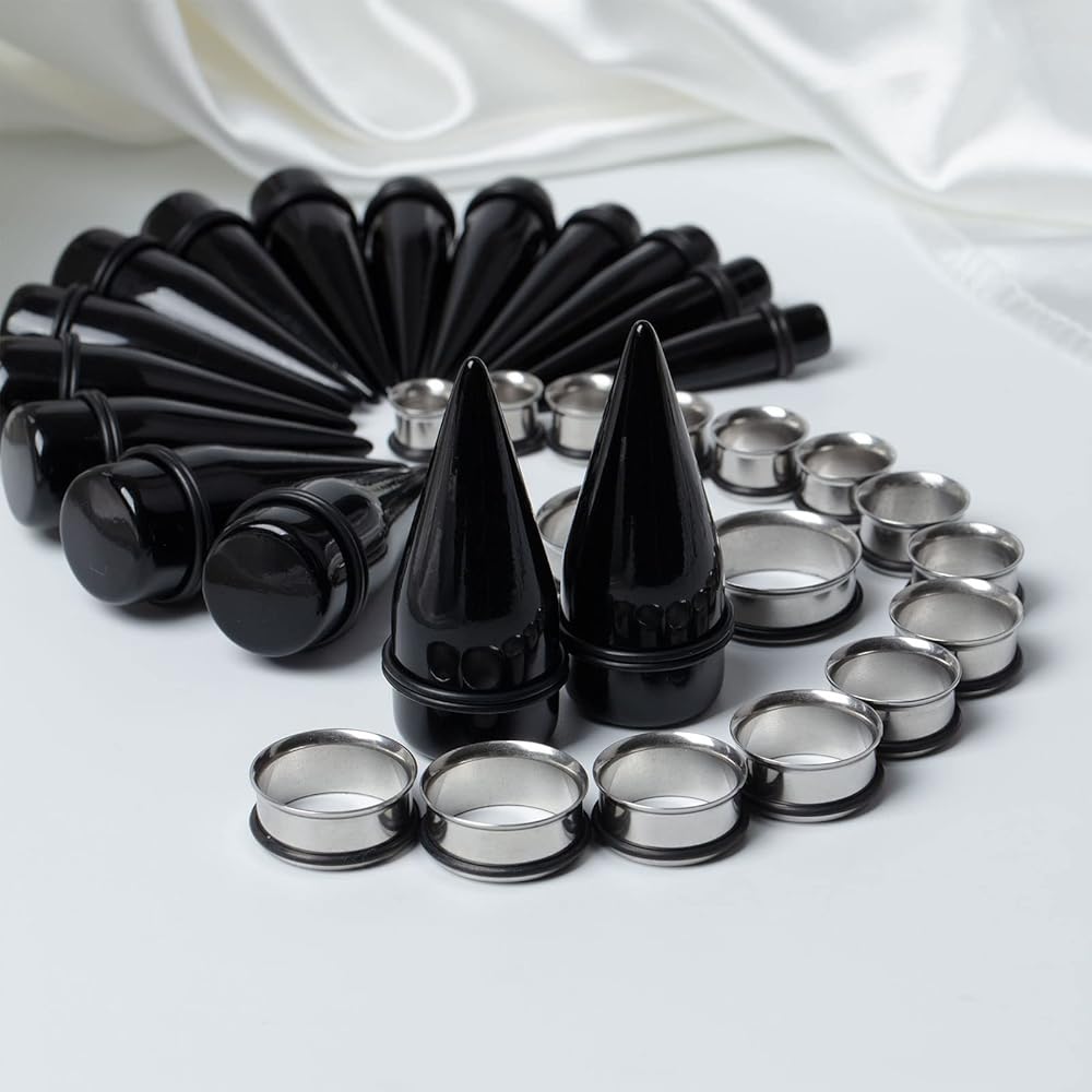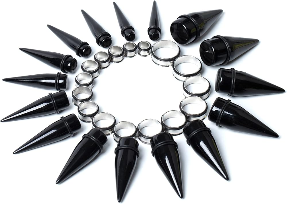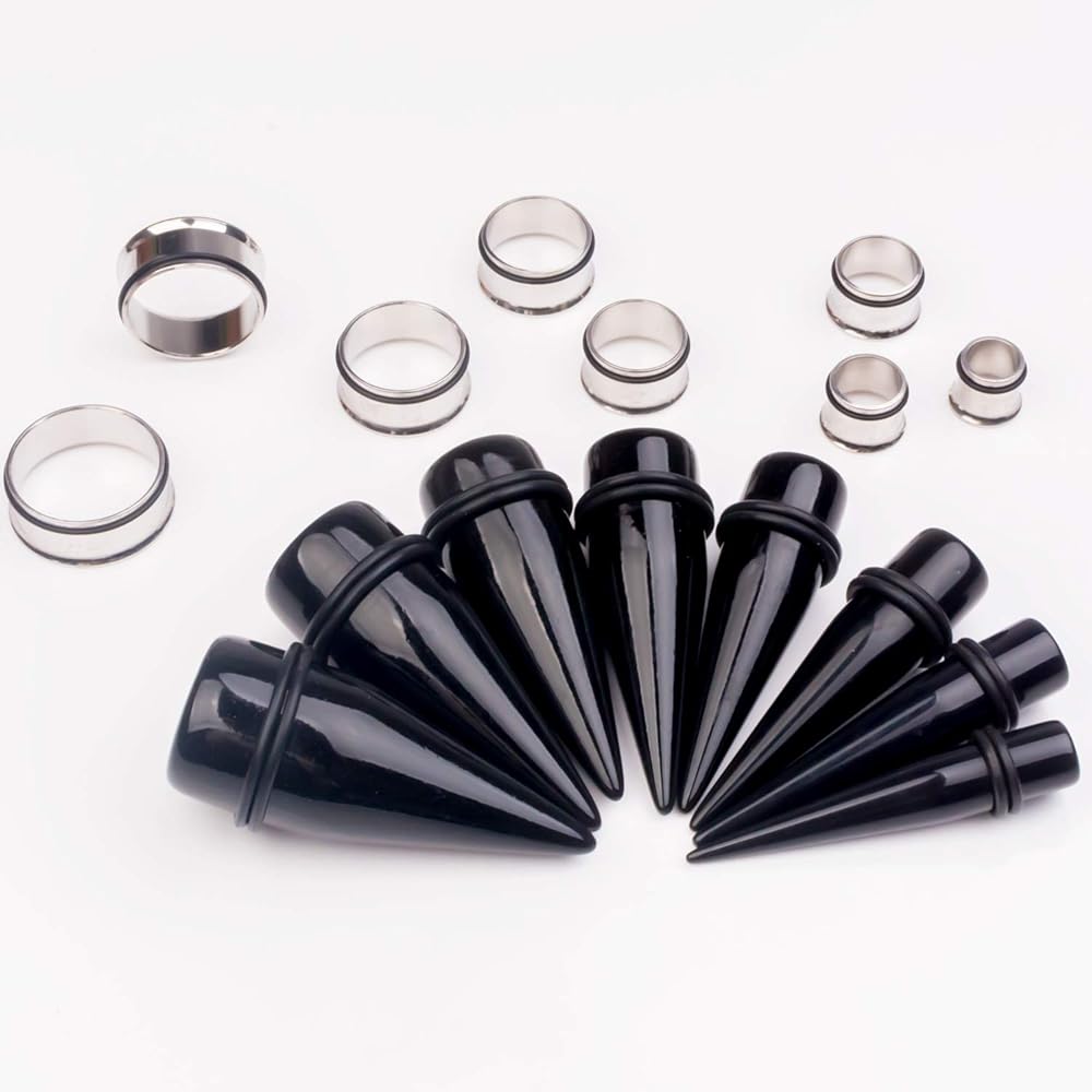 [Sizes Details]: Tapers and Plugs (1 Pair of Each Size): 00G (10mm) 1/2" (12mm) 9/16" (14mm) 5/8" (16mm) 11/16" (18mm) 13/16" (20mm) 7/8"(22mm) 15/16"(24mm).