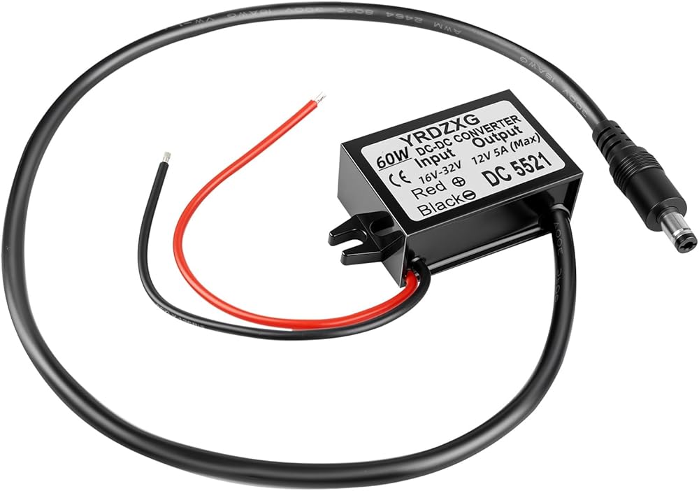 DC 24V to 12V 5A Power Adapter Conversion, with 5.5mmx2.1mm DC Output Jack (Input Range 16V-32V), Suitable for 12V Voltage Regulation of LED Lights, GPS, routers, and Bluetooth Speakers