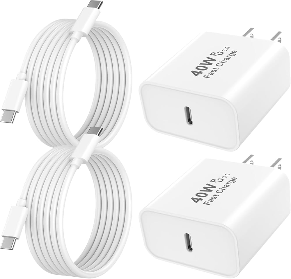 【What Your Get】 2 Pack 40W USB C iPhone 17 16 15 charger fast charging blocks and 2 Pack 6ft USB C to USB C charging cable cords. Any questions about the iPhone 17 Pro Max chargers fast charging, please feel free to contact us and we will reply within 12 hours.