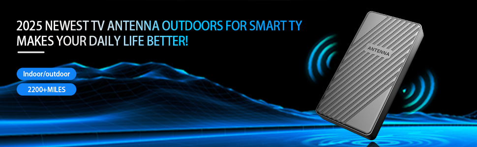 2.2K+MILE LONG RANGE : Long Range Reception! Our digital for smart TV antenna outdoor adopts the newest 2025 chip and signal booster, while equipped with advanced upgrades,2200+ miles and 360° reception around your HDTV! It provides more stable TV signal reception capabilities, bringing clear pictures, low noise, and access to most TV signals with high gain