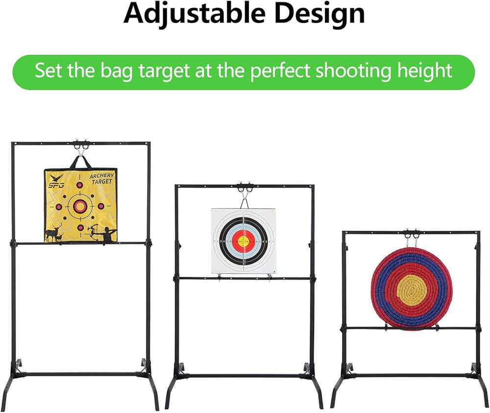 ADJUSTABLE DESIGN - Our adjustable bars and sliding hangers lift your bag target off the ground and adjust your bag target to the perfect shooting height. Each bar has 4 hanging points to fit more sizes and types of archery targets.