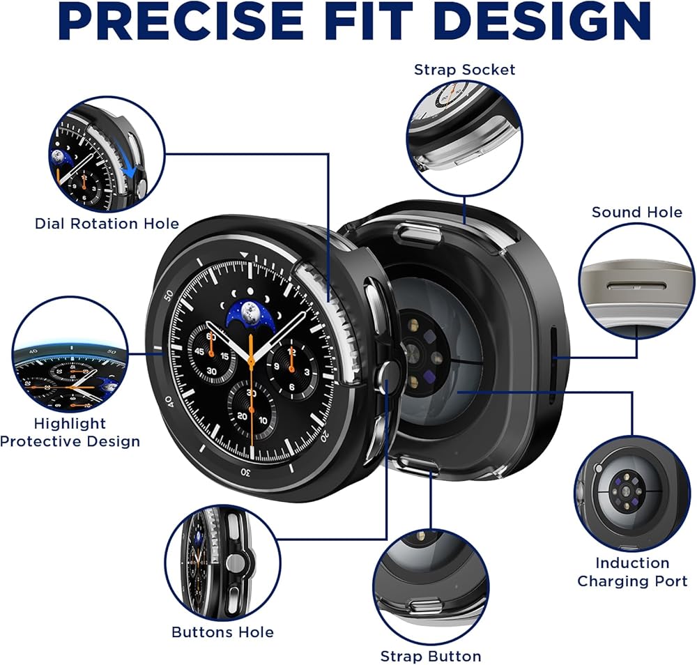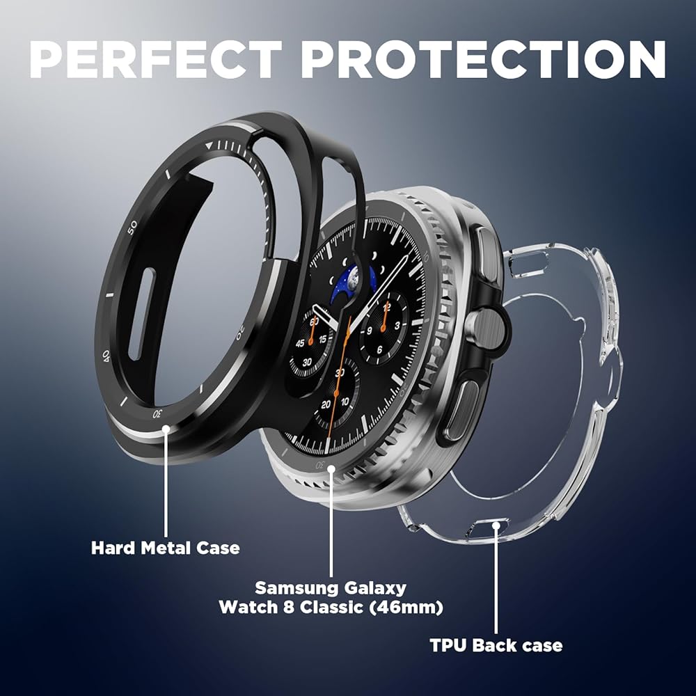 [Perfect Protection] Durable Hard Metal Case with PC back cover fully safeguards Samsung Galaxy Watch 8 46mm against scratches and drops.