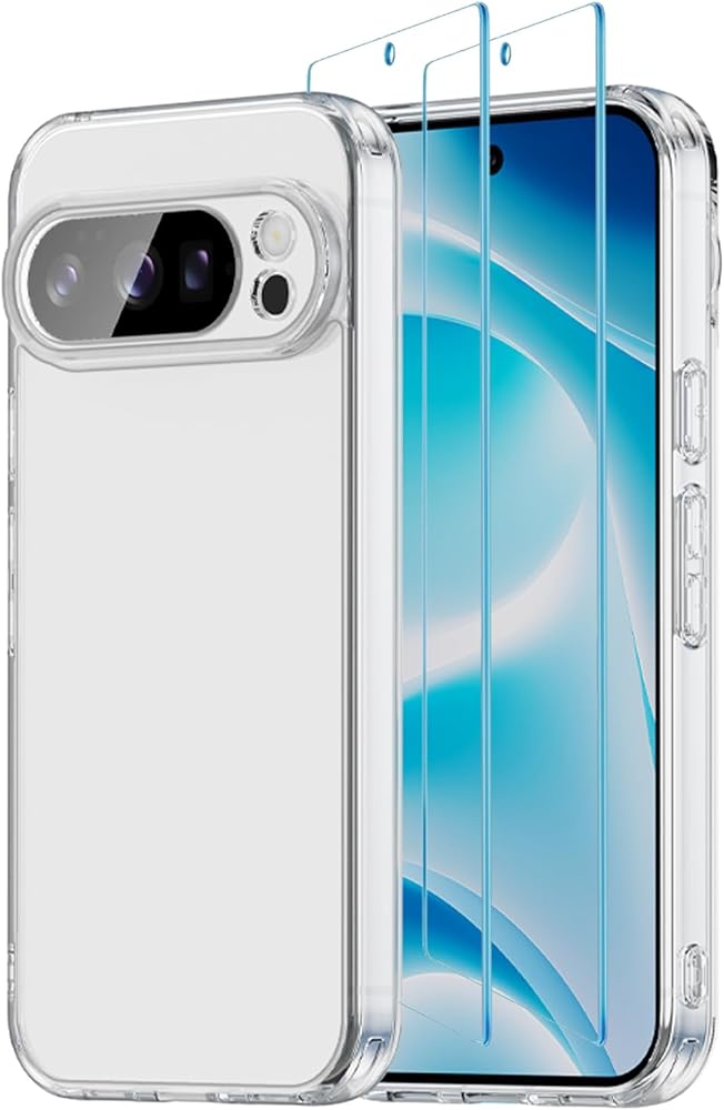 Case for Google Pixel 10 Pro 2025, with 2 Pack of Screen Protector Non-Yellowing Shockproof Bumper Protective Phone Case, Anti-Scratch Hard Acrylic Back (Clear)
