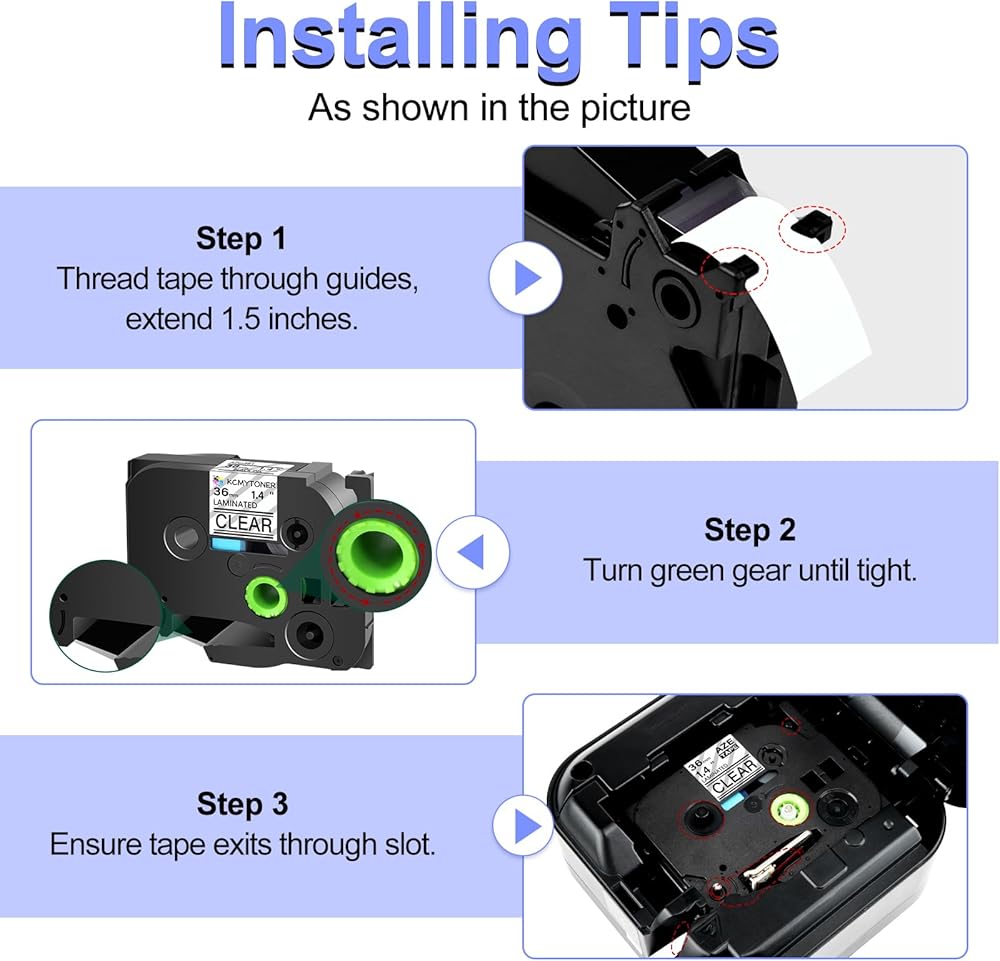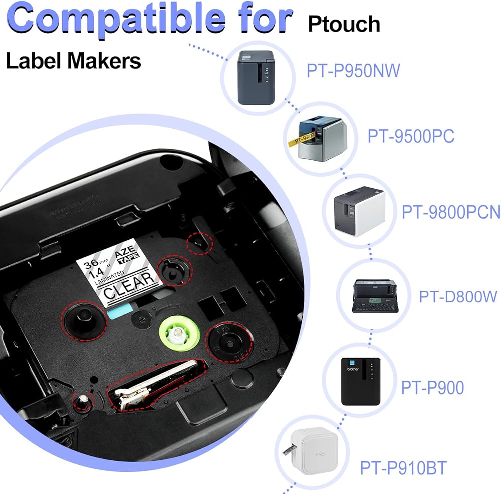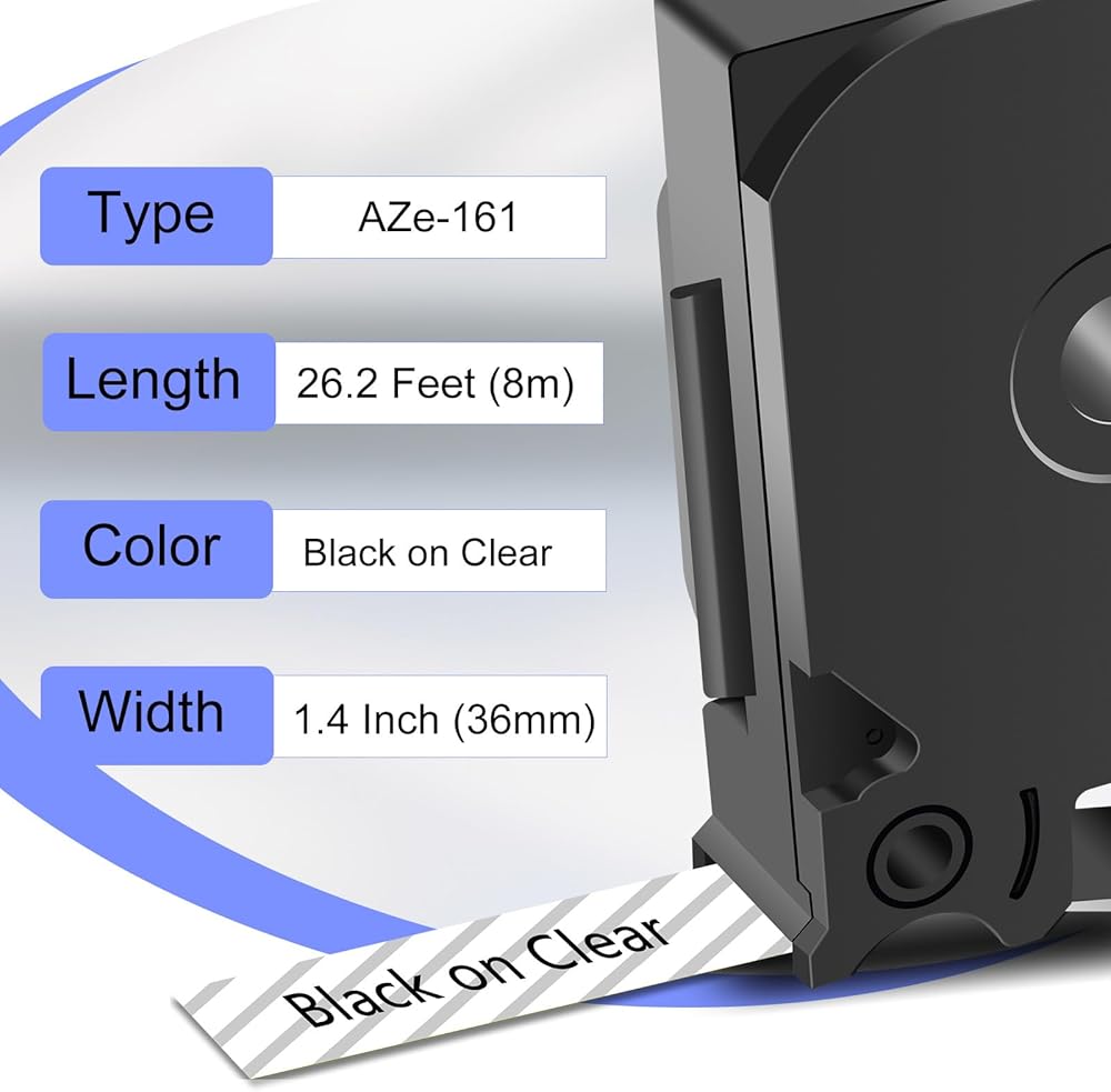 Package Included: 5 pack KCMYTONER compatible for Brother P-touch TZe-161 TZ-161 AZe-161 laminated label maker tape. Color: black print on clear; width: 36mm (1.4" or 1-1/2 inch) , length: 8m (26.2ft) each.
