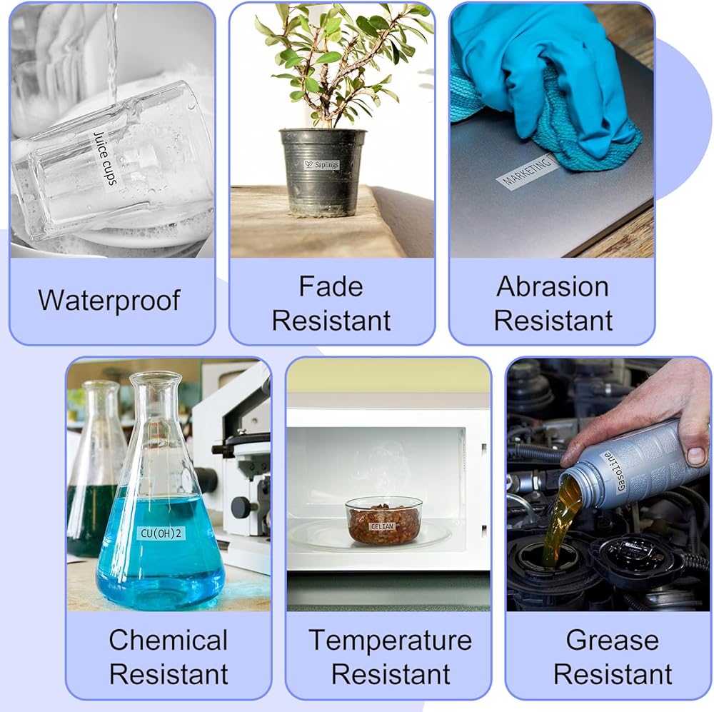 Upgraded Technology: Thermal printing technology. Designed to stick to almost all clean, dry, flat surface for durability even under harsh conditions. Water-resistant, fading-resistant, abrasion-resistant, chemical-resistant, higher or lower temperature-resistant as well as grease-resistant, exposure to sunlight without fading or peeling.