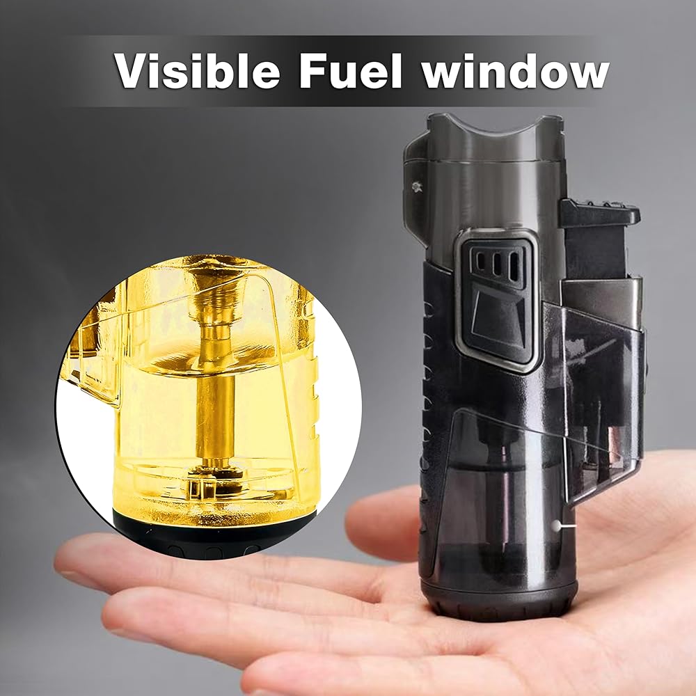 VISIBLE FUEL TANK: An visible gas tank can help you quickly check fuel level and remind you to refill gas in time. Also no worry about filling too much fuel, resulting in butane gas waste. This refillable butane lighter has 2.8g capacity fuel to ensure long last using