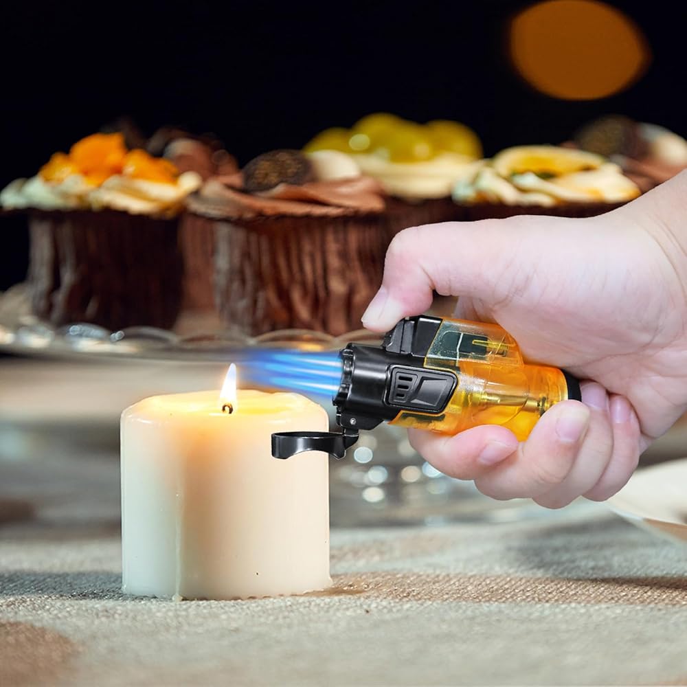 POWERFUL 3 TORCH: This torch lighter consist of 3 copper burners, can spray 2800°F powerful flame. Strong triple torch for any task, provides greater wind-resistant than single and double flame lighter. A great fire starter for grill, BBQ camping, hiking, candles, etc