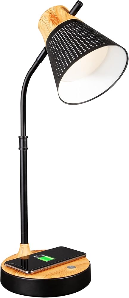 OttLite Wellness Series Wireless Charging LED Table Lamp, LED Desk Lamp and Book Light, Reading Light, Great Desk Lights for Home Office, Black with Woodgrain Accents