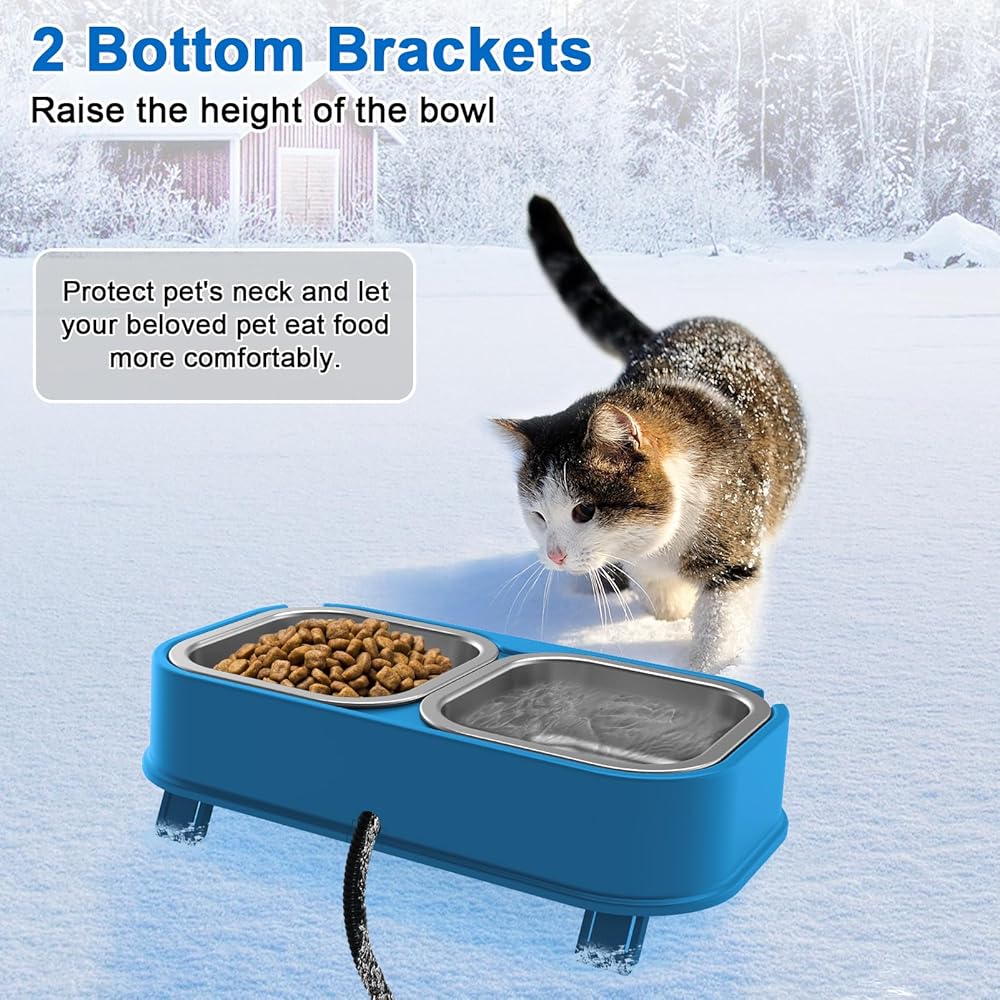 Heated Cat Bowl for Outdoor Cats, Outdoor Heated Pet Bowl with Raised Brackets to Protect Pet's Neck, 56 OZ Heated Water Food Bowls for Kitty Feral Cat, Provide Warm Water and Food in Winter.