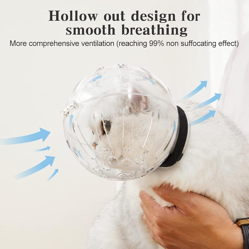 Cat Muzzle with Breathable Hood, Transparent Anti-Bite Astronaut-Style Face Cat Mask Hood for Grooming & Bathing, Trimming Nails, Prevent from Small Dog Cats Biting and Chewing, for Neck 7.36-8.94''