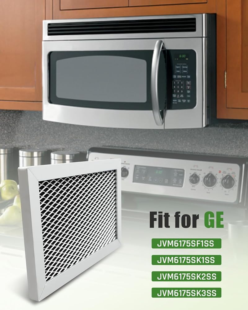 Perfect Fit: Microwave Grease Filter is fit for GE JVM6175SF1SS, JVM6175SK1SS, JVM6175SK2SS, JVM6175SK3SS, Size: Length: 13.38", Width: 5.87", please confirm the model and size before purchasing