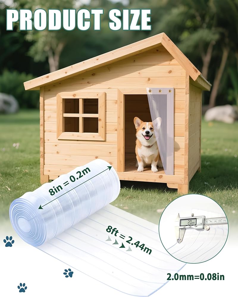 Dog Door Replacement Flaps,8inx8ft 0.08" Thick Insulated Clear PVC Vinyl Strip, DIY Cut-to-Fit for Dog House/Cat Kennel with Screws,Easy Install,Weatherproof Wind-/Waterproof Pet Accessory