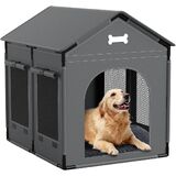 Dog House Indoor, Large Doghouse Soft with Frame, Waterproof Pet House for Medium Large Dogs with Oxford Fabric, Warm Indoor Dog House Bed with Soft Cushion, 27.56x21.26x26.77in, Dark Gray