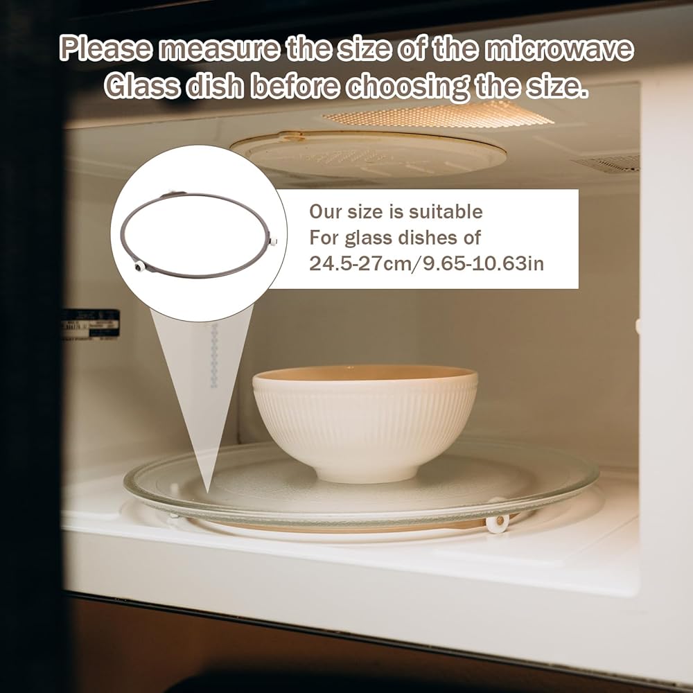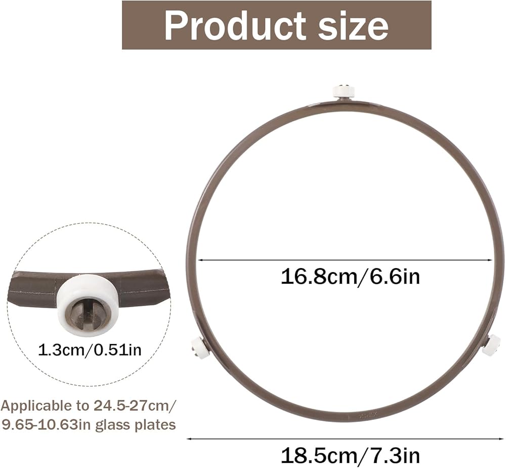 【Product Dimensions】: The outer diameter of our microwave turntable ring is approximately 18.5cm/7.3 inches (excluding the pulley), the inner diameter is 16.5cm/6.5 inches, and the pulley height is 1.3cm/0.51 inches. Please confirm the dimensions before purchasing to ensure they meet your needs