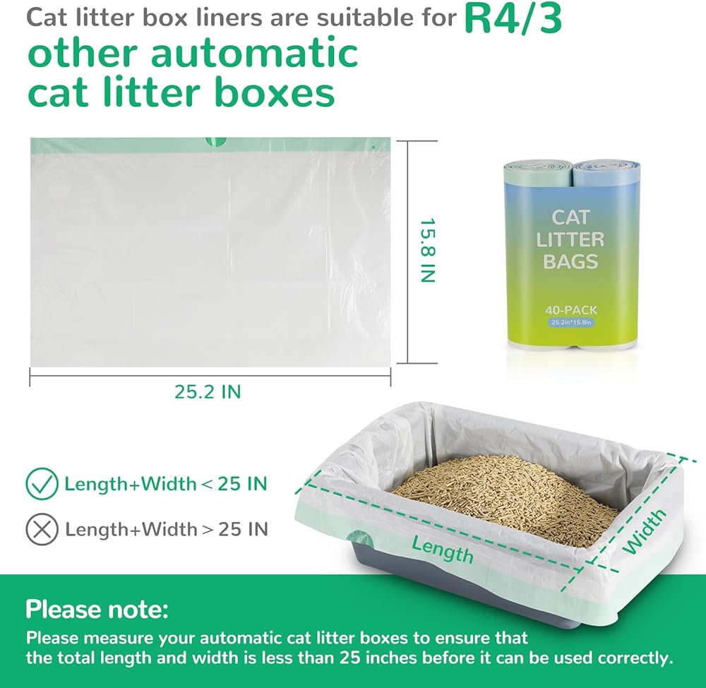 SUITABLE FOR YOUR ROBOT: Cat litter box liners are suitable for R4/3, and most automatic cat litter boxes