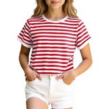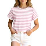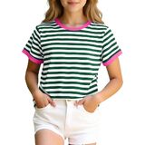 FEATURES: Featuring a crewneck, short sleeve and New York blue white striped print, these cute tops for teen girls showcase trendy striped with trendy charm—ideal for girls of all ages