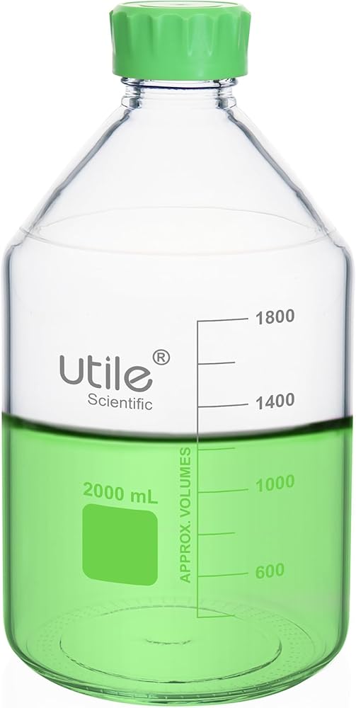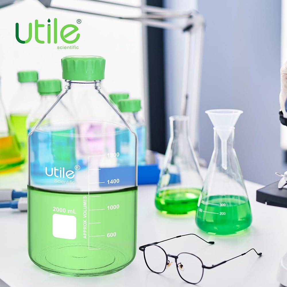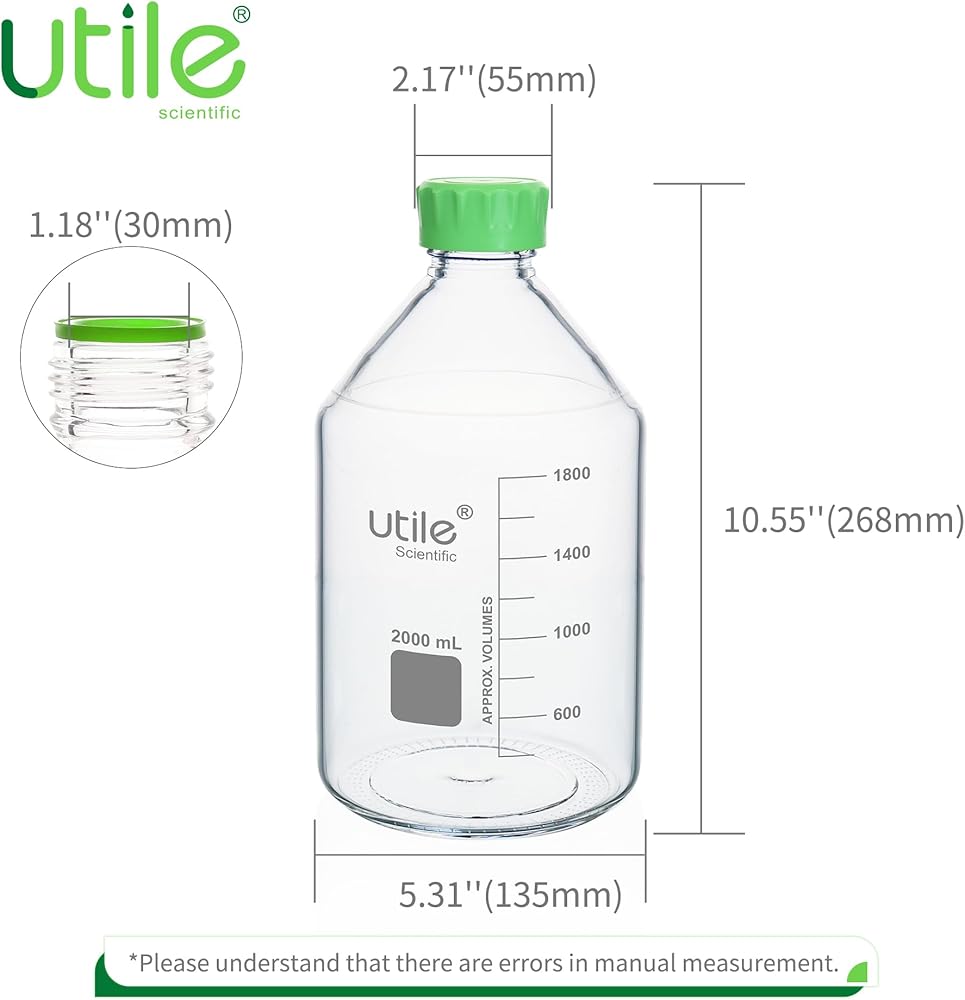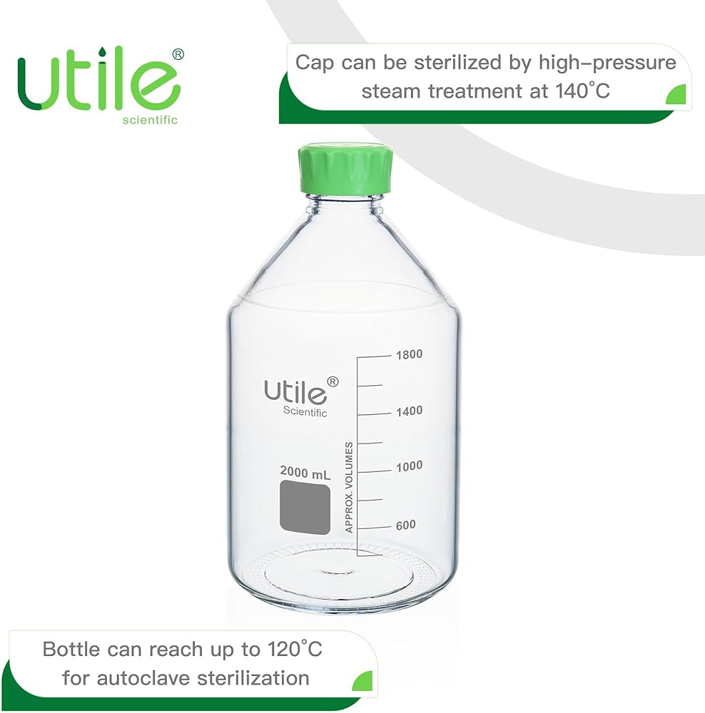 Utile media storage bottle set, are made of 3.3 Borosilicate material, compliance with ISO 3819 Laboratory glassware-Bottle, Including 2pcs of 1000ml(33.8oz) 3.3 borosilicate glass bottles.