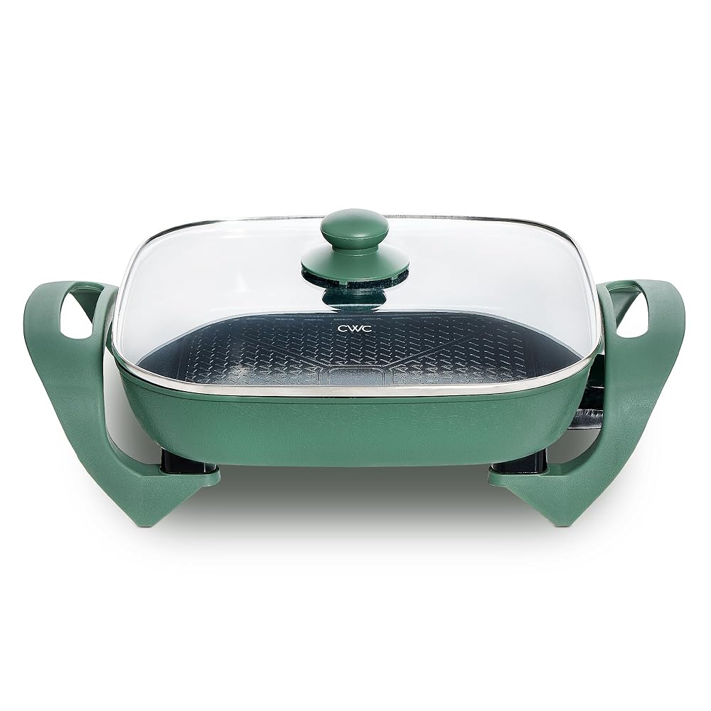 Spacious and Durable: Features a large 12" x 12" x 2.4" die-cast aluminum pan with a ceramic coating, offering durability, even heat distribution, and ample space for large meals.