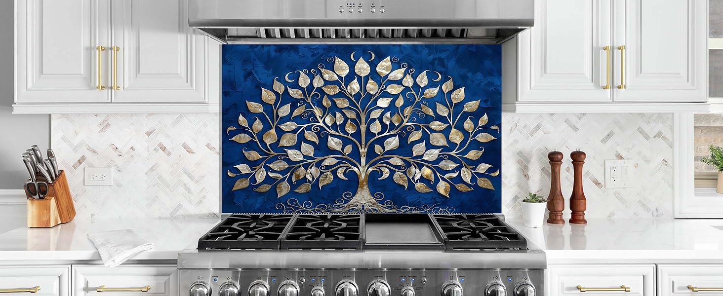 • Art Centerpiece: Our glass backsplash uplifts any kitchen with its artful design, whether used as a tile backsplash for the kitchen wall or behind the stove backsplash panel.