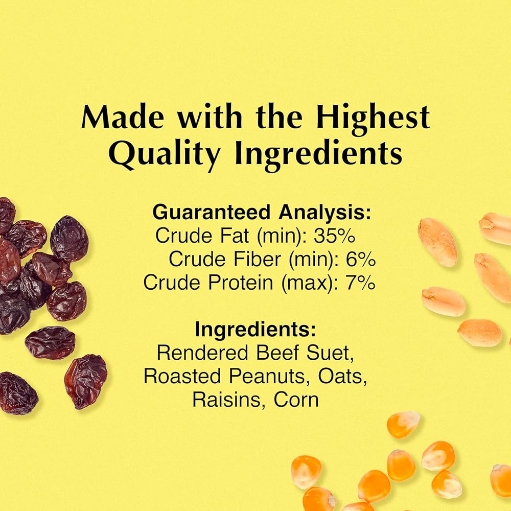 MADE WITH REAL FRUIT for a nutritious diet. Suet cakes provide the essential energy and calories birds need to forage, nest, migrate and more.