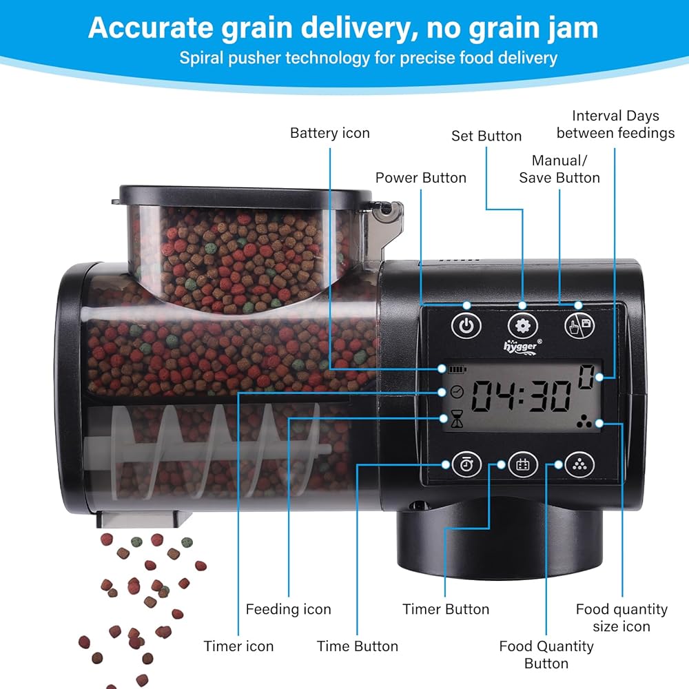 hygger Automatic Fish Feeder for Aquarium: Auto Fish Food Dispenser with Timer,quantitative and Fixed-Point Feeding System for Betta Turtle Small Tank - Aquarium Vacation Feeder with 3 AAA Batteries