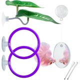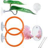 Simply place the mirror 2-3 times weekly for short interactions. Position rings where food tends to scatter. Attach the rest leaf to tank glass via suction cup. Rinse all items before first use.