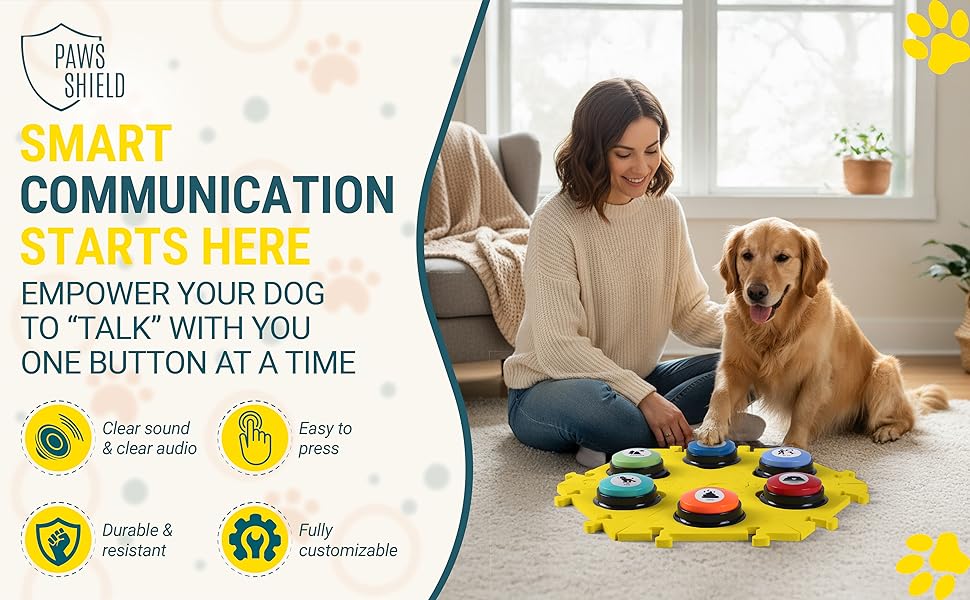🐾【 Dog Buttons for Communication 】Say It with a Paw: Let your dog "speak" using this easy-to-use dog talking buttons starter set. With just a paw press, they can tell you they want to go out, play, or get a treat. Perfect for everyday dog communication.